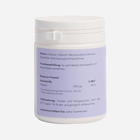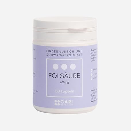 Folic Acid, 200 mcg for the Perfect Dosage, 180 Capsules, Desire for Children, Pregnancy, Breastfeeding, Vegan & Made in Germany