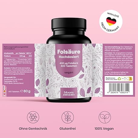 Sản phẩm Folic Acid 400 μg - 400 Tablets - High Dose for Pregnancy and Pregnancy - Laboratory Tested with Certificate - 100% Vegan - Annual Supply - Packaging May Vary đang được bán với giá ưu đãi là $12.5568 tại nước Đức.