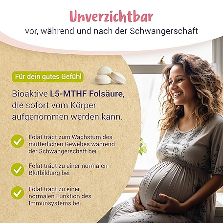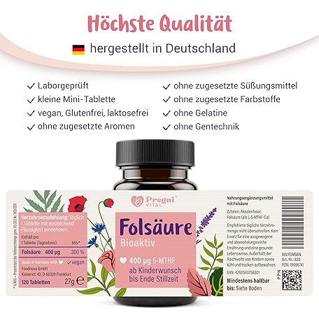 Sản phẩm Folic Acid 400µg - L-5-MTHF Folic Acid Desire for Pregnancy and Pregnancy - High Dose, Optimal Bioavailable - 120 Tablets đang được bán với giá ưu đãi là $12.6767 tại nước Đức.