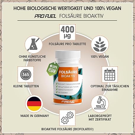 Thương hiệu ProFuel là cái tên nổi tiếng được rất nhiều khách hàng trên thế giới chọn lựa. Với kiểu dáng đẹp mắt, sang trọng, sản phẩm Folic Acid Bioactive 400 μg - 3 x 365 Folic Acid Tablets with Biofolate L-5-MTHF Folic Acid - Optimal High Dose for Desiring Children and Pregnancy - Laboratory Tested with Certificate - 100% Vegan là sự lựa chọn hoàn hảo nếu bạn đang tìm mua một món cho riêng mình.
