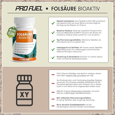Thương hiệu ProFuel là cái tên nổi tiếng được rất nhiều khách hàng trên thế giới chọn lựa. Với kiểu dáng đẹp mắt, sang trọng, sản phẩm Folic Acid Bioactive 400 μg - 365 Folic Acid Tablets with Biofolate L-5-MTHF Folic Acid - Optimal High Dose for Desiring Children and Pregnancy - Laboratory Tested with Certificate - 100% Vegan là sự lựa chọn hoàn hảo nếu bạn đang tìm mua một món cho riêng mình.