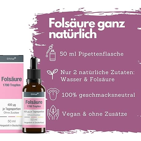 Sản phẩm Folic Acid Drops, 400 µg per Daily Dose – 50 ml Bottle, Pregnancy & Immune System – 100% Vegan, No Additives & Laboratory Tested Made in Germany đang được bán với giá ưu đãi là $17.2111 tại nước Đức.