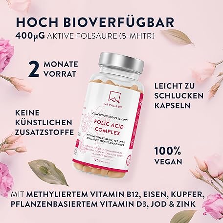 Sản phẩm Folic Acid Pregnancy Vitamins 400 μg Folic Acid Pregnancy with Vitamin B12 Vitamin D3 Zinc Iron Copper Pregnancy Vitamins Folic Acid High Dose Folic Acid Prenatal Vitamins 120 Capsules đang được bán với giá ưu đãi là $21.582 tại nước Đức.