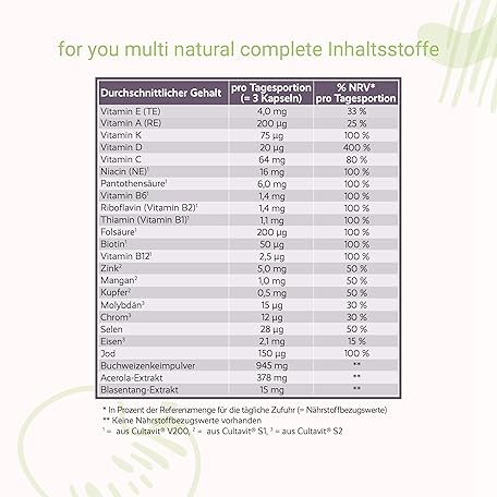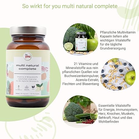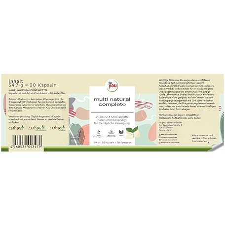 Sản phẩm for you Multi Natural Complete Natural Plant Extracts 90 Capsules - 100% Natural High Dose Premium Multivitamin Multineral Preparation - Wide Spectrum of Vitamins & Minerals đang được bán với giá ưu đãi là $30.4655 tại nước Đức.