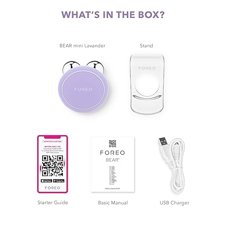 Thông tin sản phẩm Foreo Bear mini Lavanda Smart Microcurrent facial tightener for targeted facial tightening, 3 microcurrent intensities, anti-shock system, app-connected.