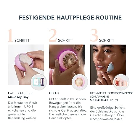 Thông tin sản phẩm FOREO Hyper Hydra UFO 3 Set - Gesichtsmaske Gerät + 14 UFO-aktivierte Masken + Nachtmaske für extra Feuchtigkeit 75 ml - Rotlichttherapie, Thermo- & Kryotherapie, T-Sonic Massage - Anti-Aging-Pflege