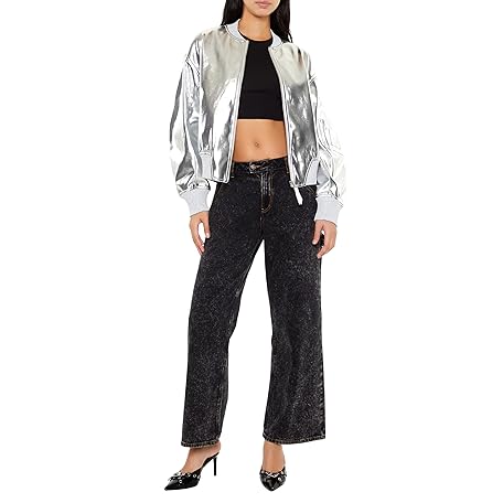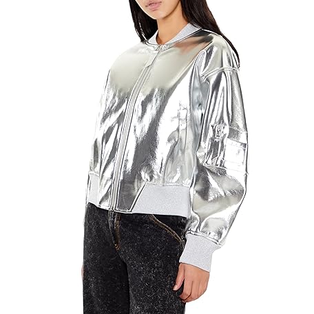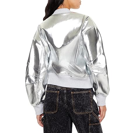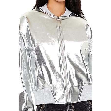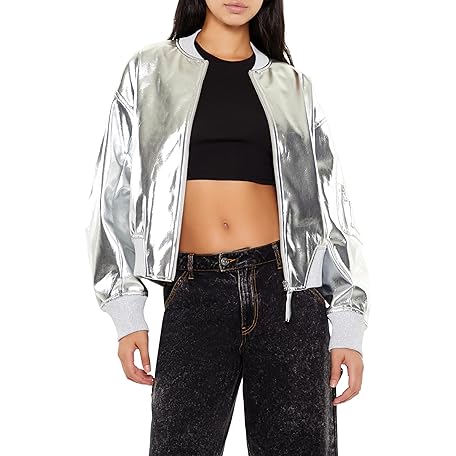 Forever 21 Women's Metallic Zip-Up Bomber Jacket Coat