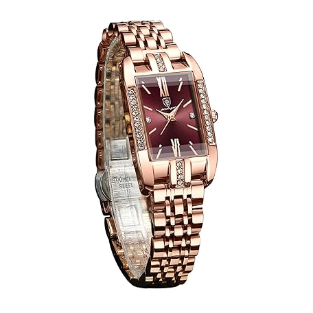 Thông tin sản phẩm FORSINING Ladies Luxury Fashion Diamond Large Dial Rectangle Waterproof Stainless Steel Wrist Watch Red, red, Bracelet