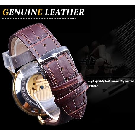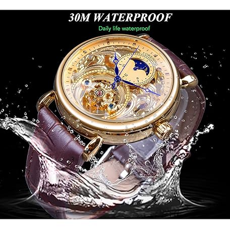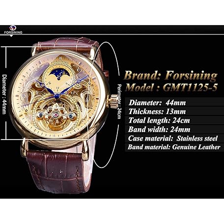 Thông tin sản phẩm FORSINING Men's Automatic Self-Winding Watch with Black Silicone Strap Retro Skeleton Moon Phase Large Dial Mechanical Watch Gold 2 Strap, Gold 2, Bracelet