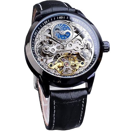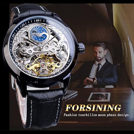 Sản phẩm FORSINING Men's Skeleton Moon Phase Watch Mechanical Self-Wind Tourbillon Dual Time Zone Watches Automatic Luxury Leather Strap Large Dial Wristwatch đang được bán với giá ưu đãi là $69.4221 tại nước Đức.