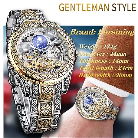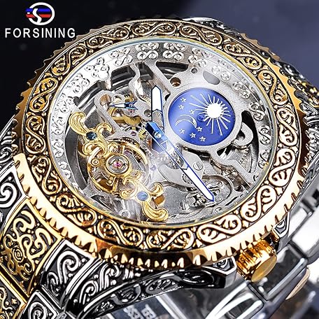 Thương hiệu FORSINING là cái tên nổi tiếng được rất nhiều khách hàng trên thế giới chọn lựa. Với kiểu dáng đẹp mắt, sang trọng, sản phẩm FORSINING Retro Men's Carved Self Winding Mechanical Tattoo Tourbillon Moon Phase Independent Second Skeleton Automatic Large Dial Wristwatches Gold, gold, Bracelet là sự lựa chọn hoàn hảo nếu bạn đang tìm mua một món cho riêng mình.