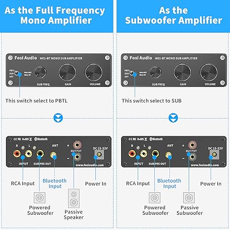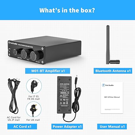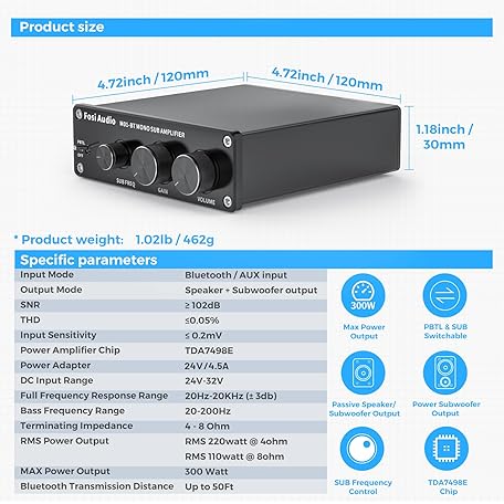 Thông tin sản phẩm Fosi Audio M01-BT HiFi Subwoofer Amplifier 300W, TDA7498E Bluetooth 5.0 Mono Channel Subwoofer Amplifier, Mini Class-D Stereo HiFi Amplifier with Bass Amplification Control for Subwoofer & Speaker