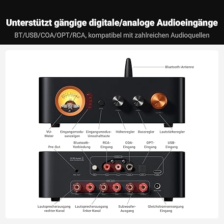 Sản phẩm Fosi Audio MC351 2.1 Channel Full Amplifier with DAC, Home Audio Stereo Power Amplifier with Dual TPA3255 Chips for HiFi Passive Speaker, Vintage VU Meter Receiver with Bluetooth and USB/Opt/Coax đang được bán với giá ưu đãi là $253.1416 tại nước Đức.