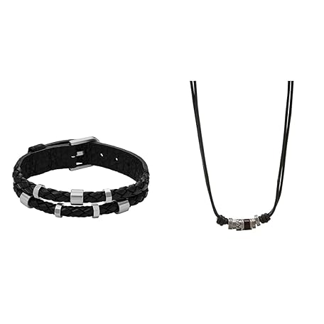 Fossil Armband für Männer Leather Essentials, Schwarzes Lederarmband, Länge: 256mm, Breite: 13.7mm, JF04473040 & Herren Kette Leder