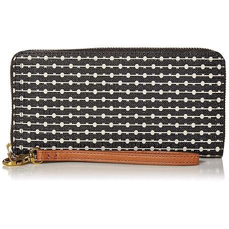 Fossil Damen Logan Leder RFID-blockierende Clutch-Geldbörse mit Reißverschluss, Schwarzer Streifen
