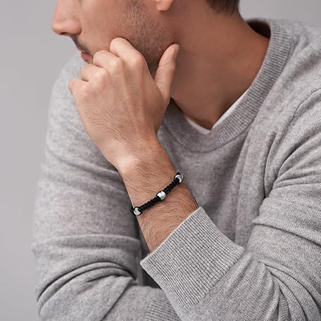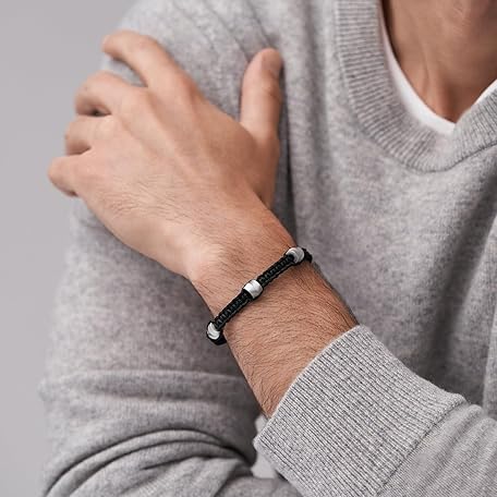 FOSSIL Men's Stainless Steel Leather Bracelet with Sliding Clasp