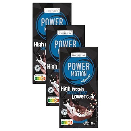 frankonia CHOCOLAT Power Motion No Sugar Added, High Protein Lower Carb Chocolate Crisp, 90 g (Pack of 3)