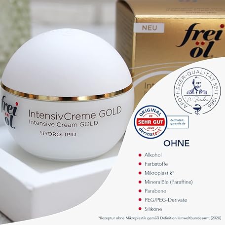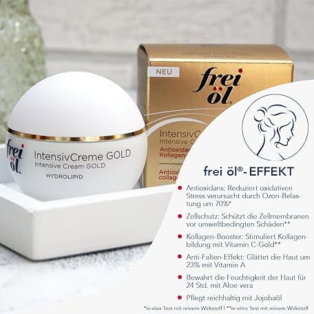 Sản phẩm frei öl Hydrolipid IntensivCreme GOLD, die Gesichtscreme enthält Antioxidans & Kollagen-Booster mit echtem Gold & Vitamin C, Jojobaöl, Aloe vera, Anti Aging Creme mit tiefenwirksamen Zellschutz, 50ml đang được bán với giá ưu đãi là $24.7757 tại nước Đức.
