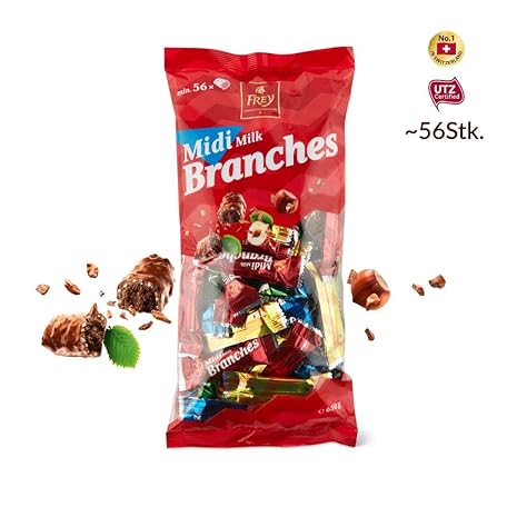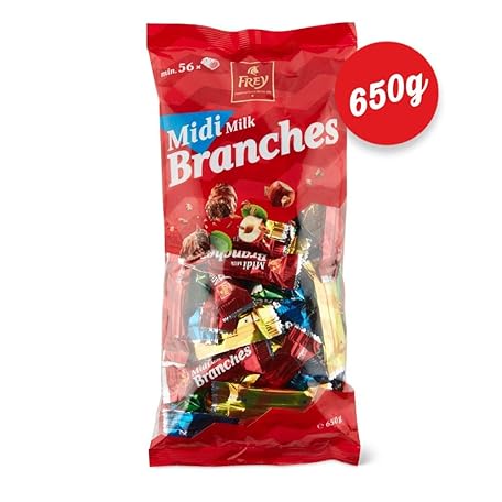 Frey Branches Classic Midi Chocolate Bars 650g Pack - Milk Chocolate Bars with Hazelnut Cream Filling Individually Packed - Swiss Chocolate - Bulk Pack 650g - UTZ Certified