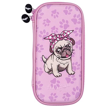 Fringoo® Kids Federmäppchen Hardtop Embossed mit Doppel-Reißverschluss, Bleistift- und Schreibwaren Organizer Lustig Neuheit mit Unicorn Design – Pink Pug)