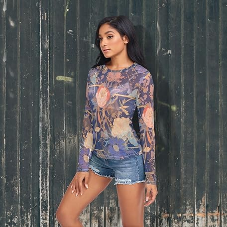 Sản phẩm FRODOTGV Floral Indonesian Batik Motif Cobalt Women's Transparent Shirts Long Sleeve Crew Neck Mesh Shirt đang được bán với giá ưu đãi là $13.08 tại nước Đức.