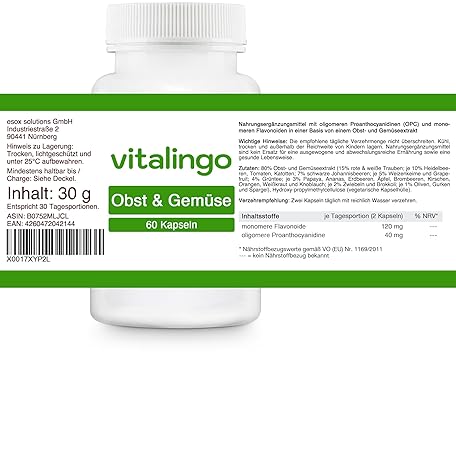 Sản phẩm Fruit and Vegetable Capsules - 60 Multivitamin Capsules of 500 mg - Vitamins and Minerals in a Patented Extract đang được bán với giá ưu đãi là $21.5929 tại nước Đức.
