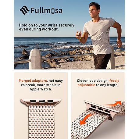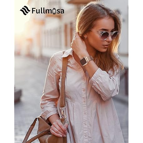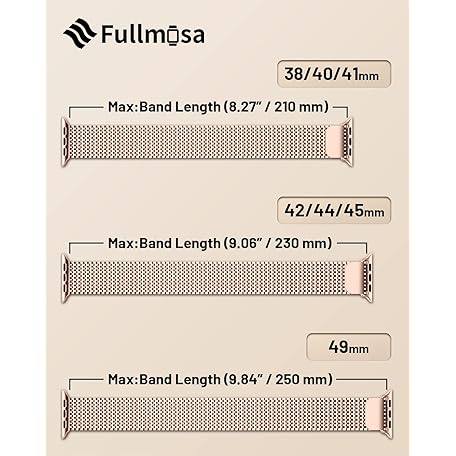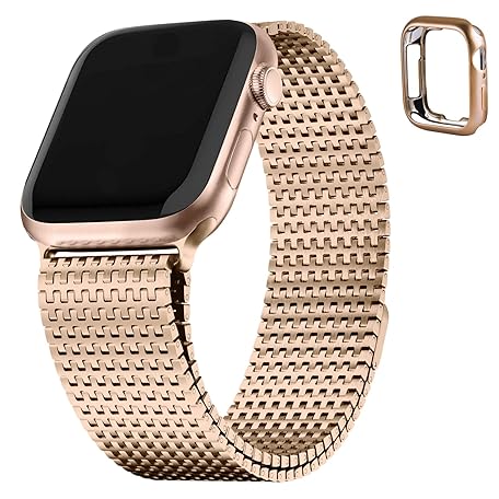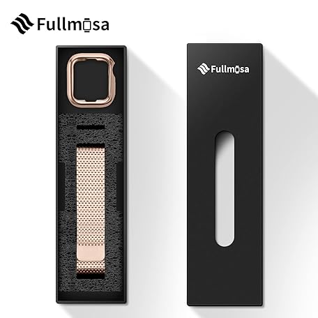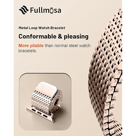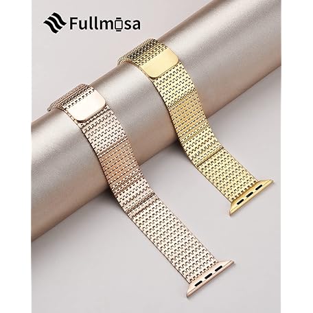 • Fullmosa Kompatibel mit Apple Watch SE 9 Armband 45mm 44mm 42mm Herren Damen, Magnet Einstellbar Milanaise Armbänder für iWatch SE Series Ultra 9 8 7 6 5 4 3 2 1, Edelstahl Metall Bands Roségold