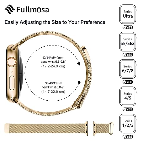 Sản phẩm Fullmosa Strap Compatible with Apple Watch Strap 40 mm 42 mm 41 mm 38 mm 44 mm 45 mm 46 mm 49 mm, Milanese Metal Strap Stainless Steel for iWatch Ultra/SE 3 2 1 Series 11 10 9 8 7 6 5 4, Stainless đang được bán với giá ưu đãi là $10.9654 tại nước Đức.