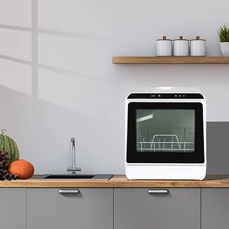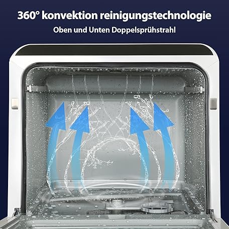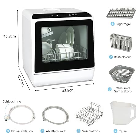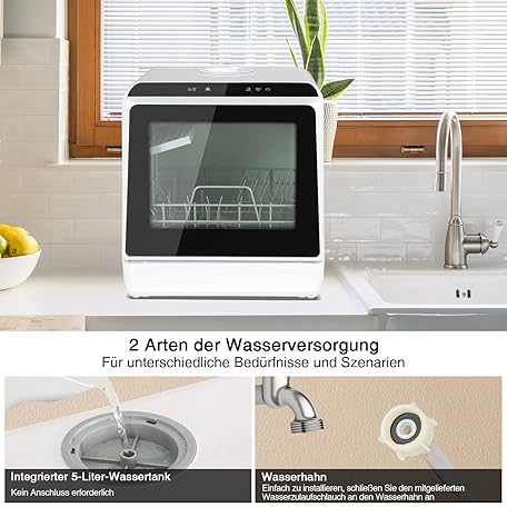 Thông tin sản phẩm Fullwatt Mini Geschirrspüler, Freistehender Tischgeschirrspüler, mit/ohne Wasseranschluss nutzbar, ragbarer Geschirrspüler mit 5+1 Programme, Integriertem 5 Liter Wassertank, Touch Control LED Anzeige