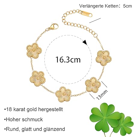 Sản phẩm FUNIO Clover Leaf Bracelet for Women - 18 Carat Gold Link Bracelet Bangle Lucky Bracelet Jewellery Gift for Women đang được bán với giá ưu đãi là $12.6331 tại nước Đức.