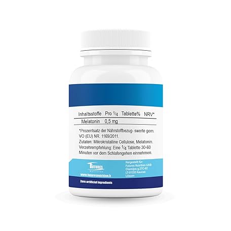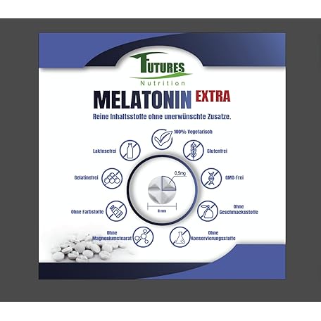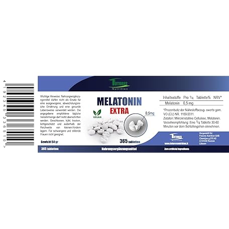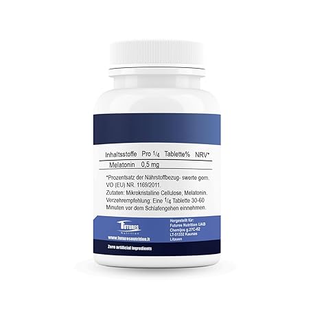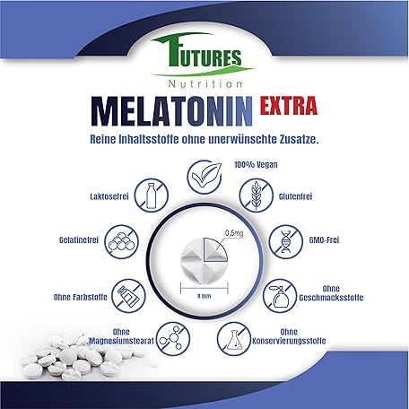 Sản phẩm FUTURES NUTRITION Melatonin Extra Dietary Supplement - 365 High Dose Sleeping Tablets - Only 1/4 Tablet per Day: Melatonin 0.5mg - No Additives and Vegan Sleeping Aids - Laboratory Tested đang được bán với giá ưu đãi là $23.0317 tại nước Đức.