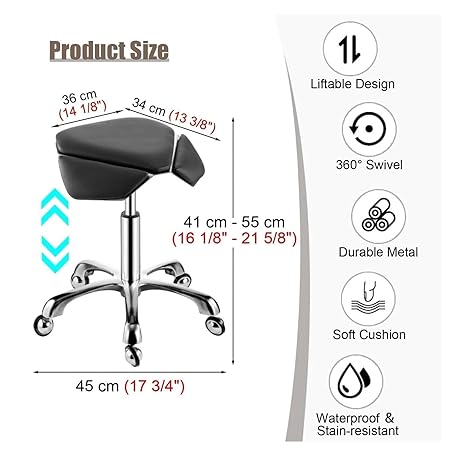 Thông tin sản phẩm FXLUHAY Sattelstuhl, Sattelhocker mit Hubfunktion, professioneller Bürostuhl for Zahnklinik, Labor, Friseursalon, stilvoller Kosmetiksalonstuhl(Black)