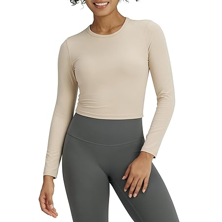 G4Free Langarmshirt Damen Activewear Longsleeve Sportshirt Fitness Crop Tops Basic Langarm Shirt Sport Oberteile Herbst Laufshirt Gym Yoga Workout(Khaki,M)