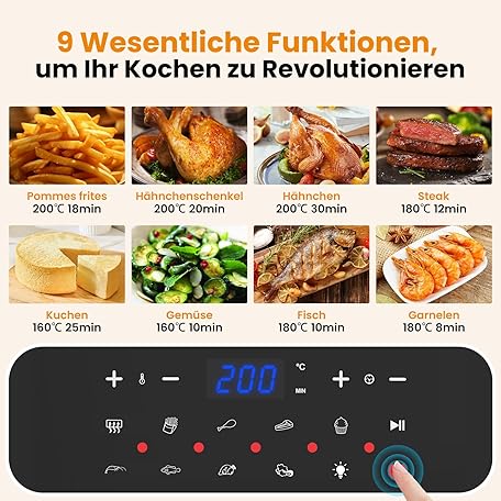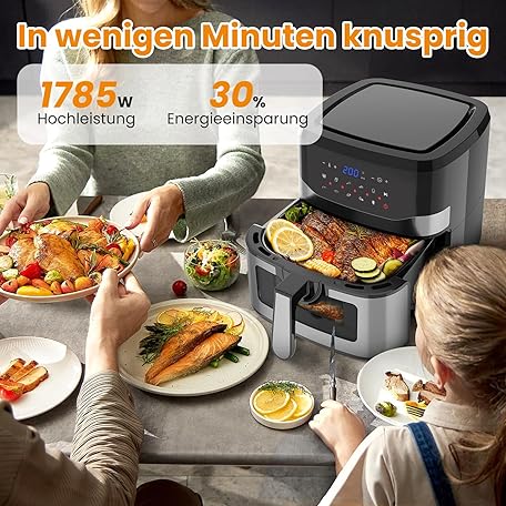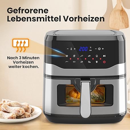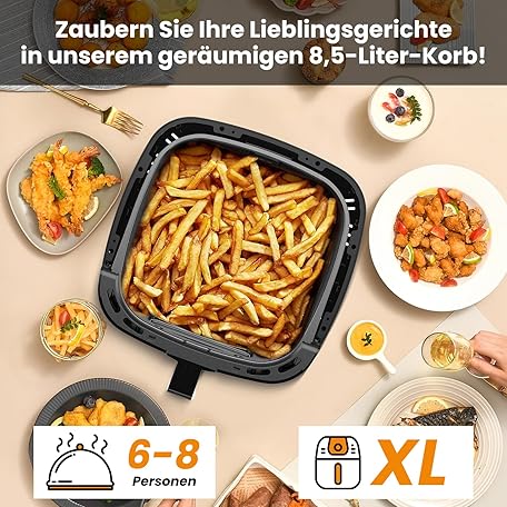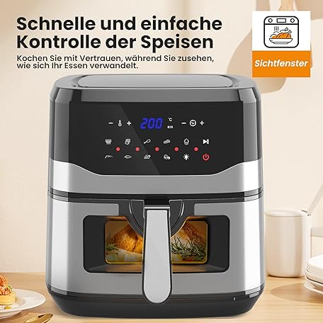 Thông tin sản phẩm G8 Pro Hot Air Fryer with Viewing Window, 1785 W 8.5 L Air Fryer with LED Touch Screen, XL Airfryer with 9 Programmes, Fryer Airfryer Without Oil, Energy Saving, Less Oil, 6-8 People