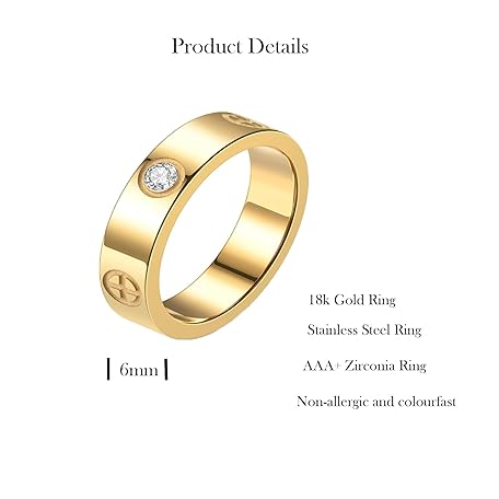 Thông tin sản phẩm GAENZA MAGIIE 6mm Damen Ring Gold, 18k Vergoldet Hochzeitsring Edelstahl, Zirkon Elegant, Jahrestag Vertrauensring Ewigkeit (Gold Zirkon, 57)