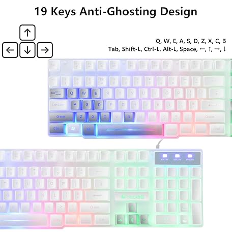 Sản phẩm Gaming-Tastatur und Maus-Set, 104 Tasten Rainbow Backlit QWERTY UK Layout-Tastatur + 2400 DPI 4 Tasten Atemmaus + Mauspad-Kombination, USB-Kabel Kompatibel mit PS4 Xbox (Need Adapter) Weiß đang được bán với giá ưu đãi là $44.2104 tại nước Đức.