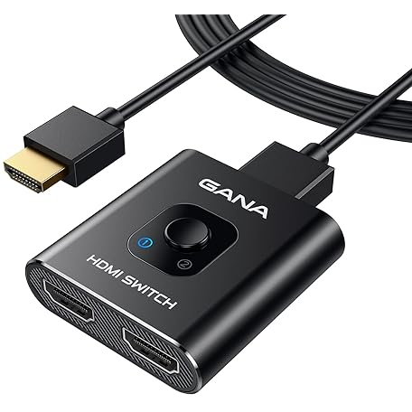 GANA HDMI Splitter 4K 60Hz 2 in 1 Out Switcher with 1 m Cable, Aluminium Housing, HDCP2.2 UHD 3D for PS5/4, Xbox, Blu-Ray DVD, Fire TV Stick, Chromecast, Monitors