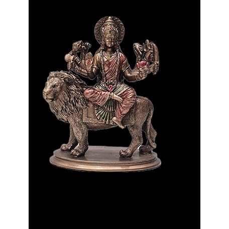 Ganeshaartsncrafts Durga Statue auf Löwe, 8,9 cm, gebundene Bronze, Sherawali MATA Moorti Hindu-Göttin göttliche Mutter Navratri Puja Idol Göttin Ambe Maa Ambika Kali Figur für Auto-Armaturenbrett