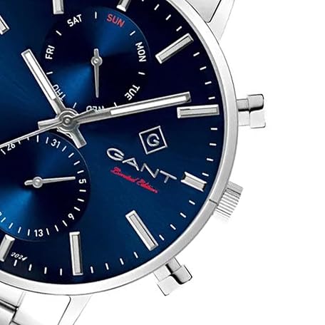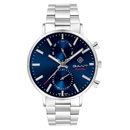 Thông tin sản phẩm Gant Men's Naples IPB 3-hand circular day-date watch 43.5 mm case diameter silver case blue dial metal strap blue, blue, Bracelet