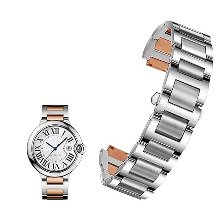 GANYUU Edelstahl-Uhrenarmband für Cartier Ballon Bleu Serie 20 * 12 mm 18 * 11 mm 14 * 8 mm W6920046 Armbänder Damen Herren Armband (Farbe: Silber Roségold, Größe: 22-14 mm)