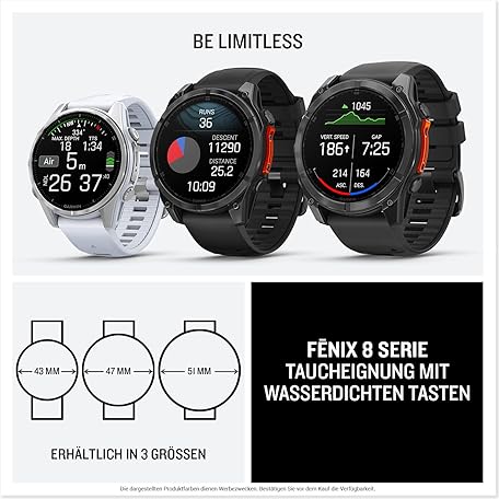 Sản phẩm Garmin fēnix 8 47 mm Multisport Smartwatch, 1.4 Inch AMOLED Touch/Button Display, Up to 16 Days Battery Life, 80+ Sport/Outdoor Apps, TOPO Cards, ECG, Telephony, Music, Torch đang được bán với giá ưu đãi là $885.3089 tại nước Đức.