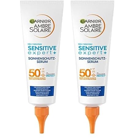 Thông tin sản phẩm Garnier Ambre Solaire Sensitive Expert+ Sun Protection Serum with SPF50+ for Sensitive Skin, Waterproof Sun Cream for Face and Body, Residue-Free, Non-Greasy Formula with Ceramides