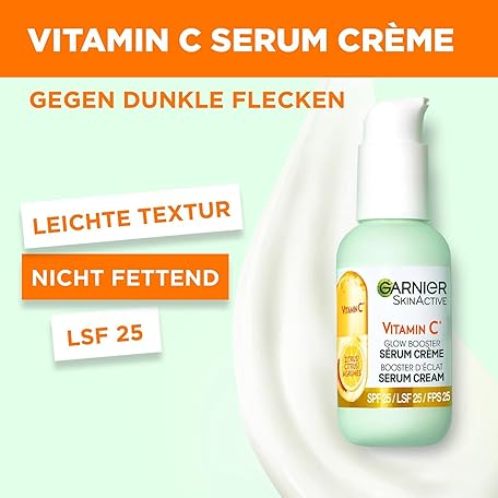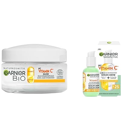 Thông tin sản phẩm Garnier Day Cream with Vitamin C for a Radiant Complexion, Invigorating and Firming Moisturising Cream Against Tired and Uneven Skin, 50 ml & Serum Cream for Tired Skin and Dark Spots, 50 ml
