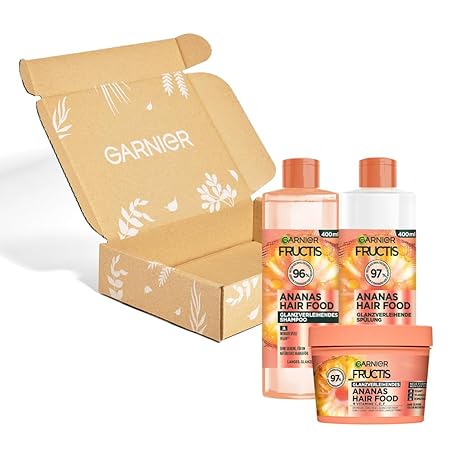 Sản phẩm Garnier Hair Set for Long, Dull Hair with Vitamins, with 3-in-1 Mask, Shampoo & Conditioner, Nourishing Anti-Frizz Care, Fructis Hair Food Set Pineapple, 3 x 400 ml đang được bán với giá ưu đãi là $16.3936 tại nước Đức.