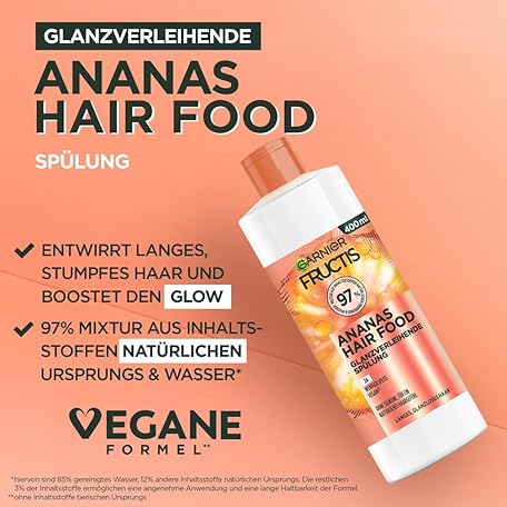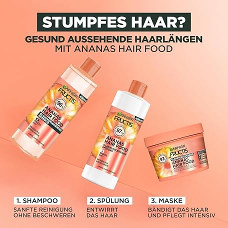 Thông tin sản phẩm Garnier Hair Set for Long, Dull Hair with Vitamins, with 3-in-1 Mask, Shampoo & Conditioner, Nourishing Anti-Frizz Care, Fructis Hair Food Set Pineapple, 3 x 400 ml