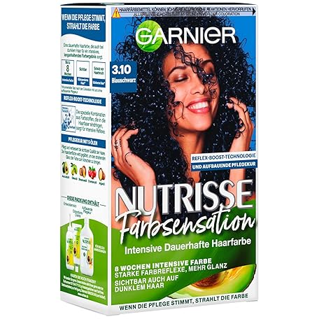 Garnier Nutrisse Nourishing Intensive Tint with Nourishing Fruit Oils, Colouration with 8 Weeks Hold, Colour Sensation Hair Colour, 3.10 Blue-Black