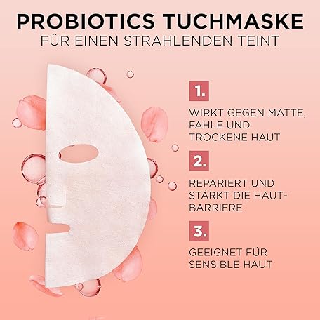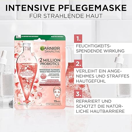 Garnier SkinActive 2 Million Probiotics Repairing Cloth Mask, Face Mask Against Dry, Dull and Matte Skin, for More Glow and More Moisture, Pack of 5