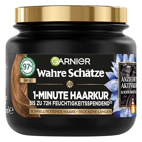 Sản phẩm Garnier True Treasures Balancing Charcoal Hair Mask, Hair Treatment for Quickly Greasy Scalp and Dry Hair Lengths, Activated Carbon and Black Cumin Oil, 340 ml (Pack of 1) đang được bán với giá ưu đãi là $5.0467 tại nước Đức.