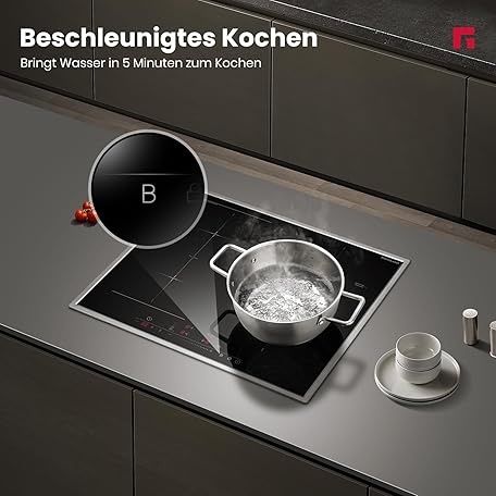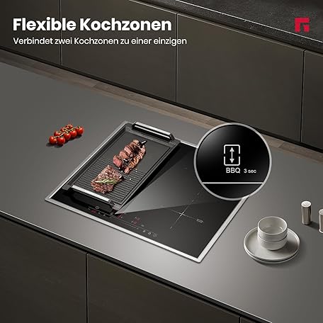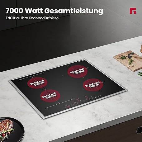 Thông tin sản phẩm GASLAND IH604BFB 60 cm Autonomous Induction Hob with Flex Zones, 4 Zone Installation Induction Hobs with Stainless Steel Frame, FlexInduction for BBQ, PowerBoost Faster Cooking, 7000 W (without Frying