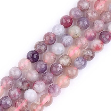 GEM-Inside 6mm Polished Round Natural Pink Purple Multicolor Peach Blossom Tourmaline Gemstone Beads for Jewelry Making Full 17" Strand